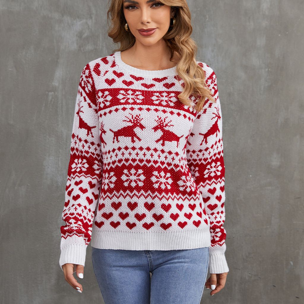 - Red Jacquard Christmas Sweater Style / S