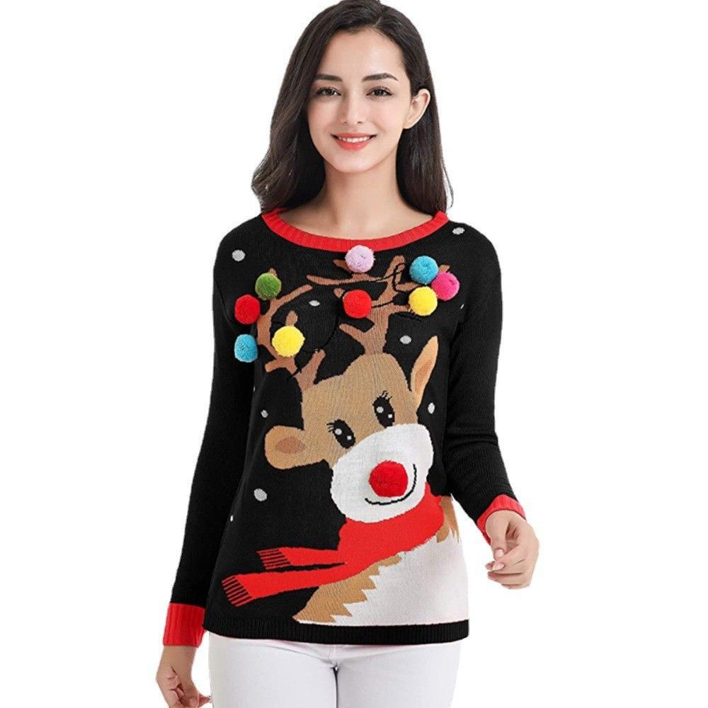 - Black Jacquard Christmas Sweater Style / S