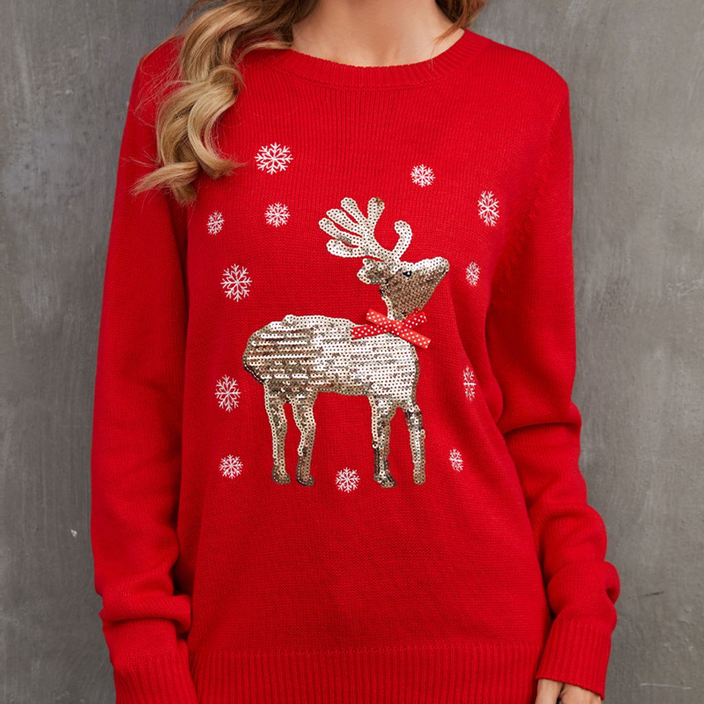 - Red Sequin Reindeer Sweater Style / S