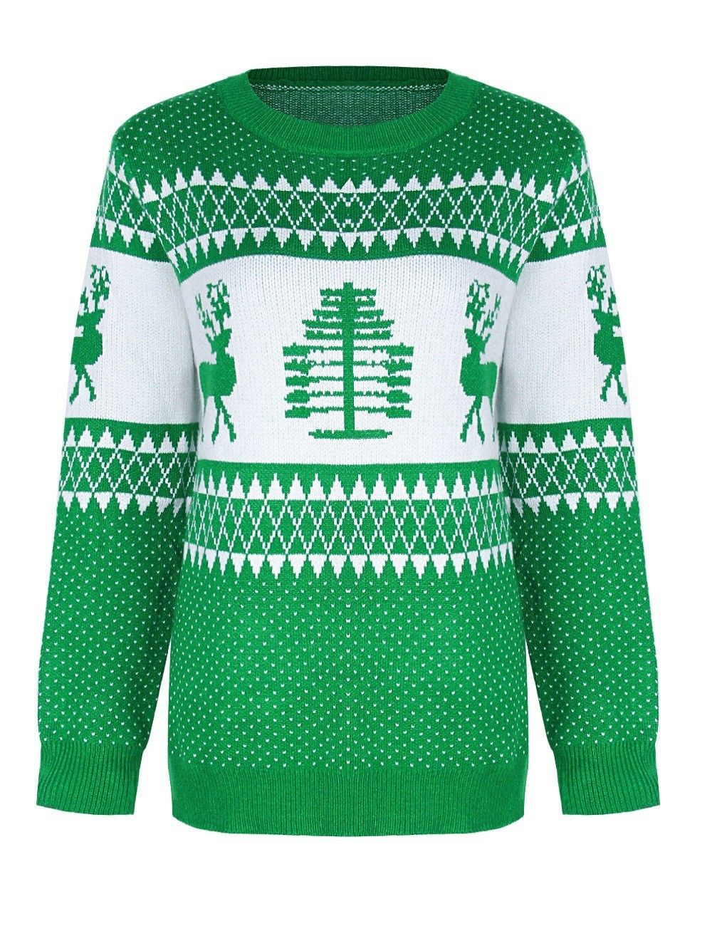 - Green Tree Pattern Christmas Sweater / S